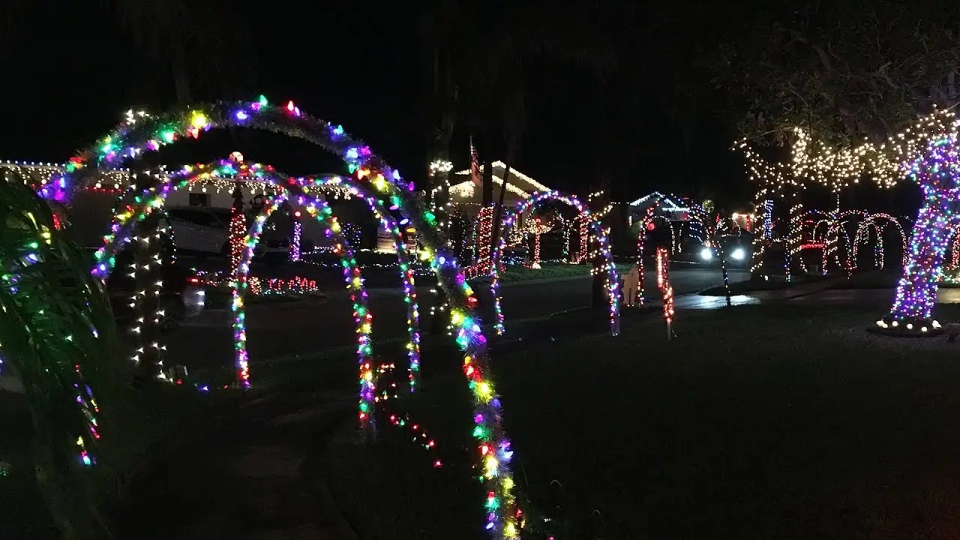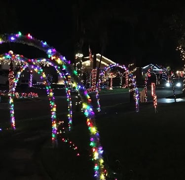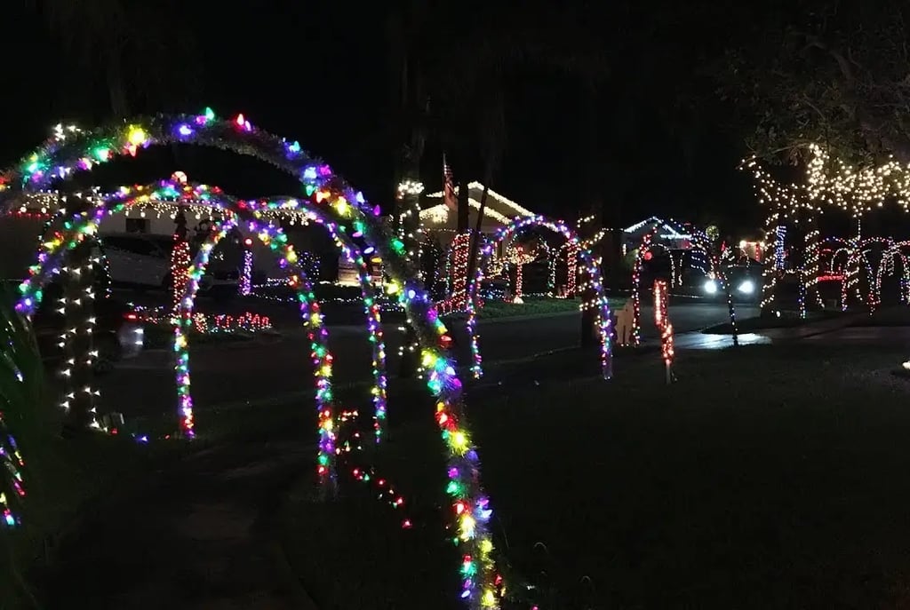 Add ground stakes with snowflakes or stars along walkways. Spotlight a big front-yard tree. Wrap the trunks of your citrus trees - the oranges peeking through the lights look unreal. Little touches like that make neighbors slow down when they drive by.
